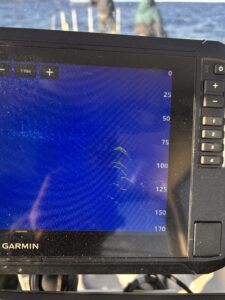 目視では魚の反応は得られないが、ソナーではばっちりあいつらが。。。